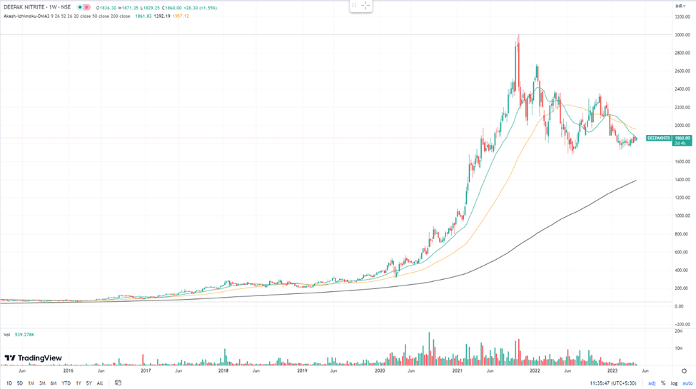 Deepak Nitrite Share Price Performance Overview Deepak Nitrite Limited operates in the specialty chemicals and intermediates sector. The Deepak Nitrite